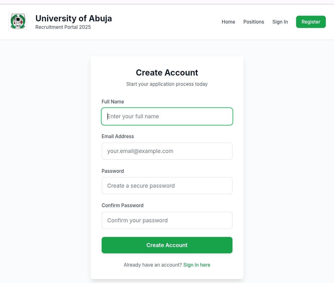Official Recruitment Portal https://recruitment.uniabuja.edu.ng